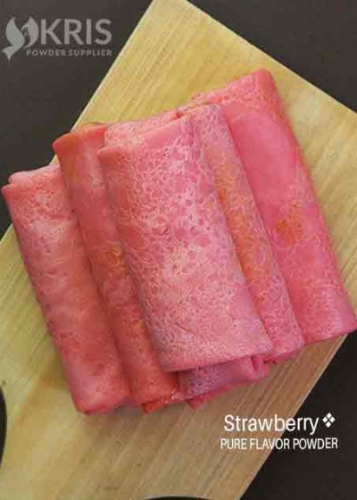 Strawberry Bubuk perisa kemasan kiloan, rasa strawberry dan aroma strawberry sangat enak, bubuk perisa rasa strawberry ini bisa dibuat makanan strawberry seperti kue cubit, dan kue dadar gulung tanpa topping atau bisa juga dibuat dengan topping lainnya.